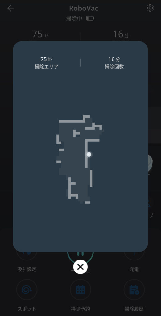 というのも、G30 Hybridのマッピング機能は掃除が終わった後に、掃除した場所・面積・掃除時間を確認できるだけ。