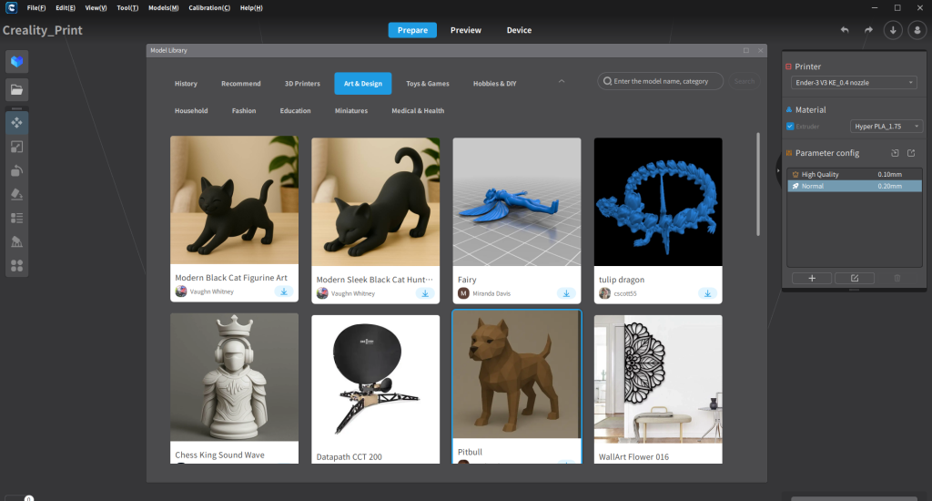 3Dモデルをダウンロードしてくる場合は、公式スライサーソフトのCreality Printから探すことができます。