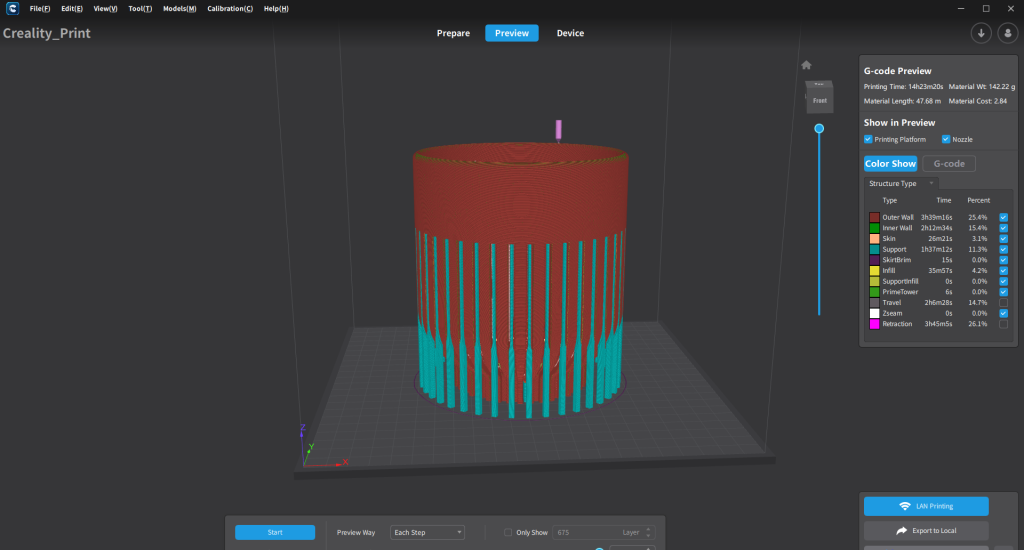 慣れてくると、印刷を始める前にスライサーソフトでフィラメントの使用量を確認し、今の残量で足りるかチェックする癖がつきます。