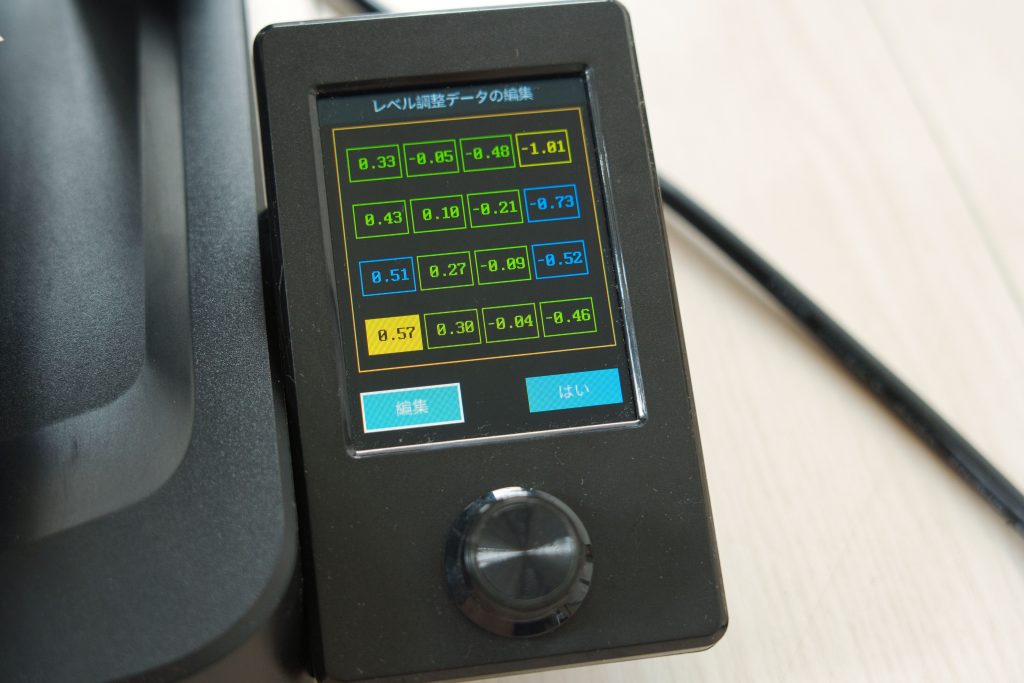 ただ、オートレベリングで出してくる数値が全体的にちょっと高いので、オートレベリング後、Z軸数値を一括で下げる必要があります。