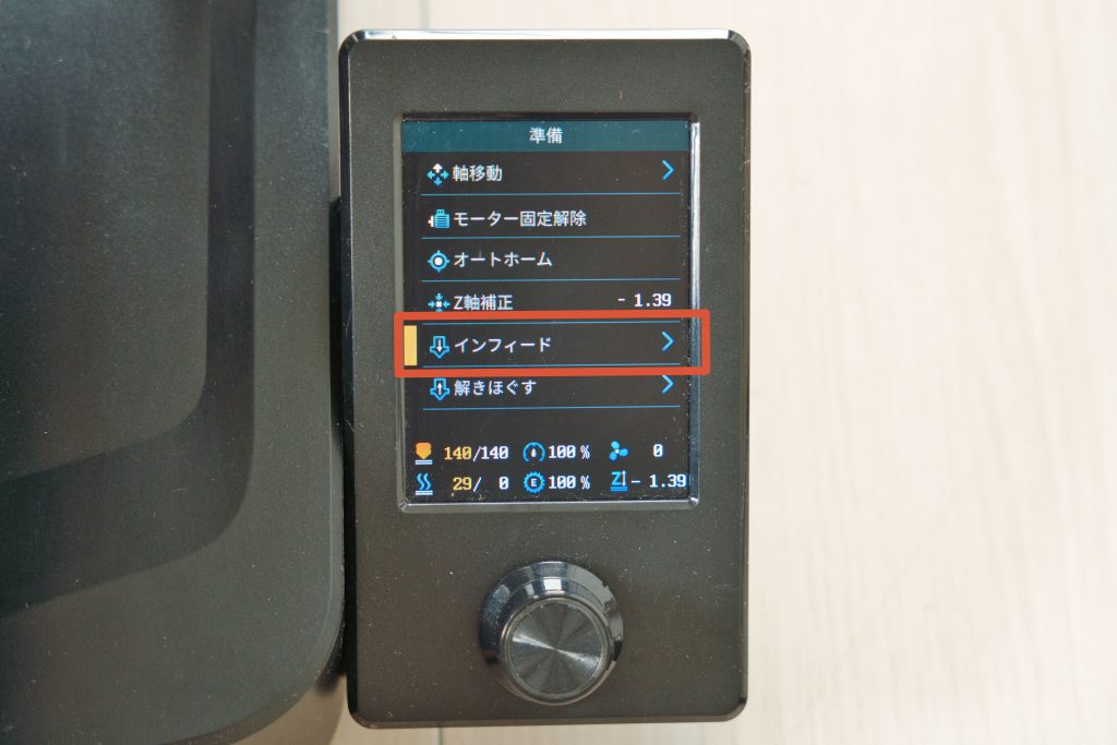 まずは印刷前にフィラメントを本体にロードしていきます。