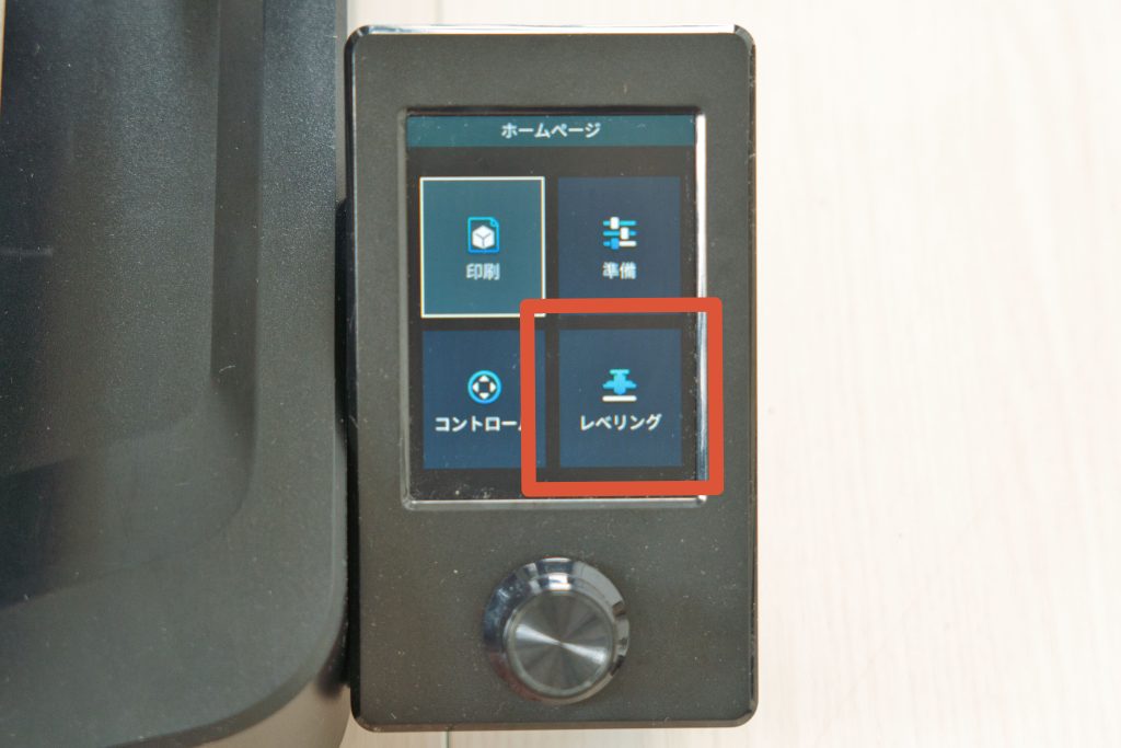 まず、本体メニューから「レベリング」を選択し、オートレベリングを実行しましょう。