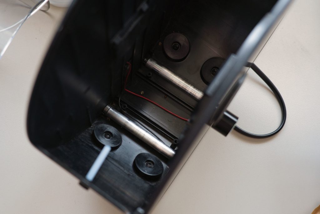 フィラメントドライヤーって下側にこういうローラーが付いていて、フィラメントスプールを入れると、乾燥しながらフィラメントを送り出すことができるようになってることが多いです。