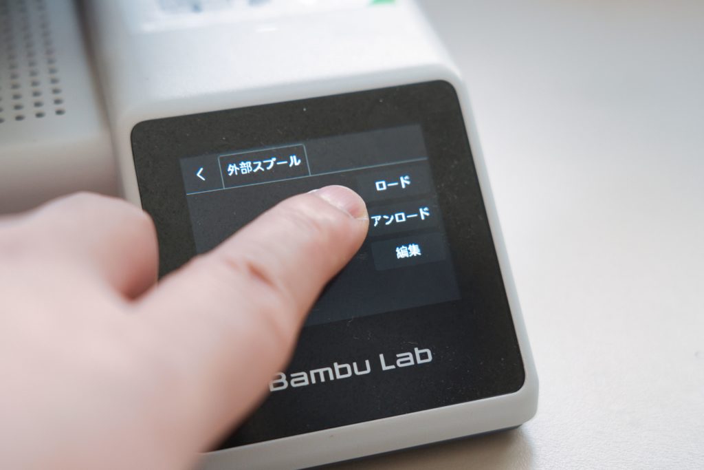 大体の3Dプリンターの操作画面でフィラメントのロードボタンがあるので、そこを押してフィラメントがロードするのを待ちましょう。