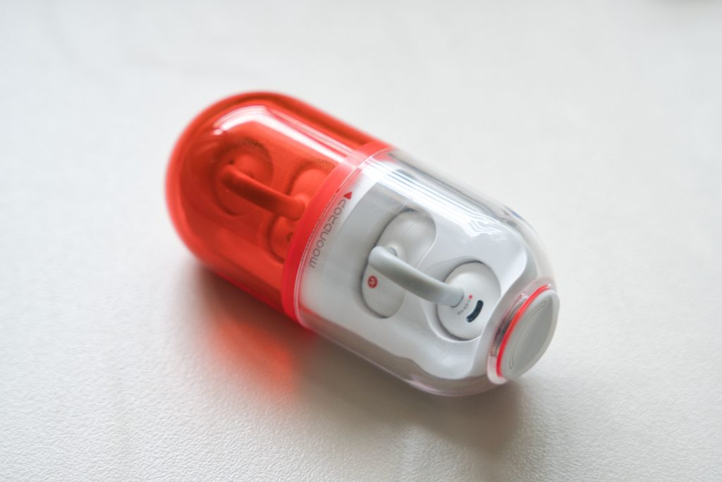 こで、「耳を塞がないオープンイヤー型イヤホン」を試してみようと思い、見た目がかわいいMoondrop Pillを購入してみました。