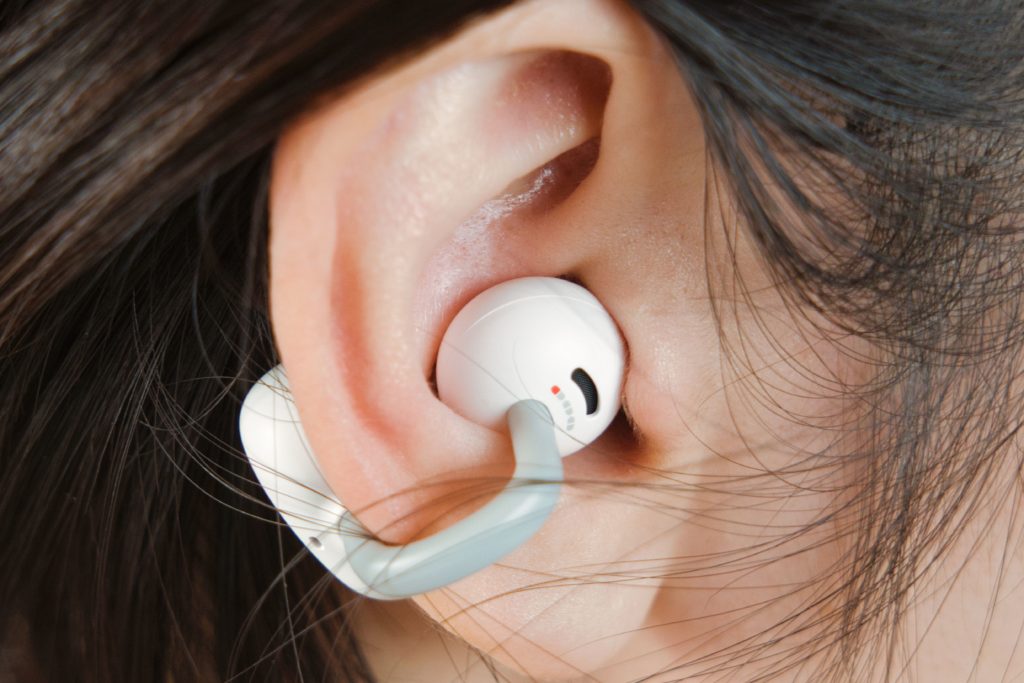 耳の穴にねじ込むカナル型とは違い、イヤーカフ型は耳の穴を塞がないので、長時間の使用でも痒くなったりしづらいのがメリット。