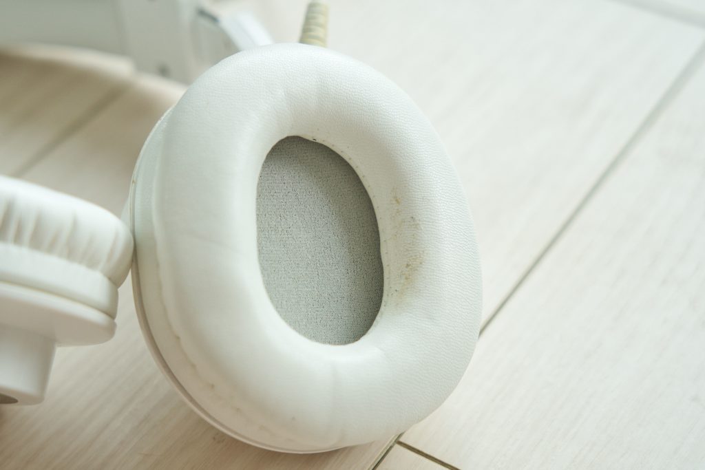 ATH-M50xの最大の弱点を挙げるとすれば、ヘッドバンドとイヤーパッドの素材が合皮(フェイクレザー)のため、経年劣化してしまう点です。