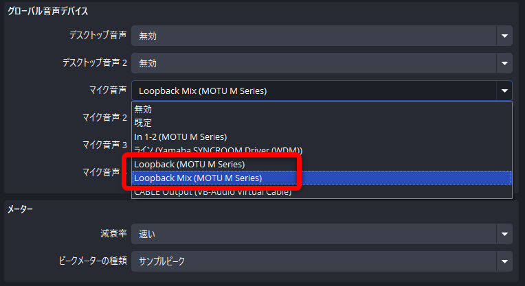 配信では基本的に「Loopback Mix」を選べばOKです!