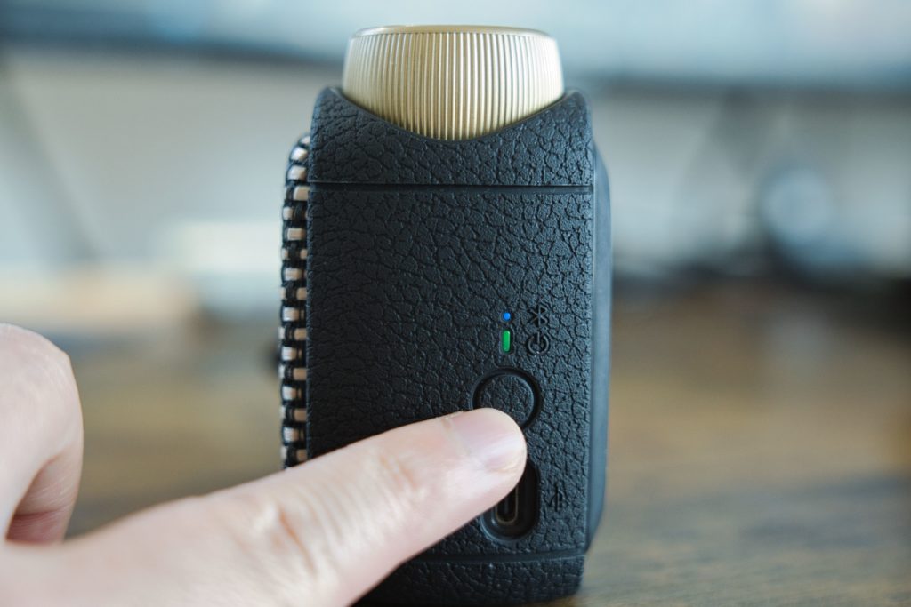 そのすぐ横にある小さな「-」「+」ボタンでBluetooth接続時の音楽ボリュームを操作します。